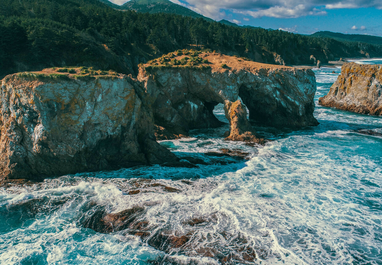 11:00 - Прибытие к Мысу Птичьему. Вас ждёт увлекательная прогулка в сопровождении гида к каменным аркам мыса, где вы сможете сделать потрясающие фото. Далее вы пройдёте к мысу Великан через лес, который многие называют «Лес фей» с завораживающий красотой и разнообразной природой.